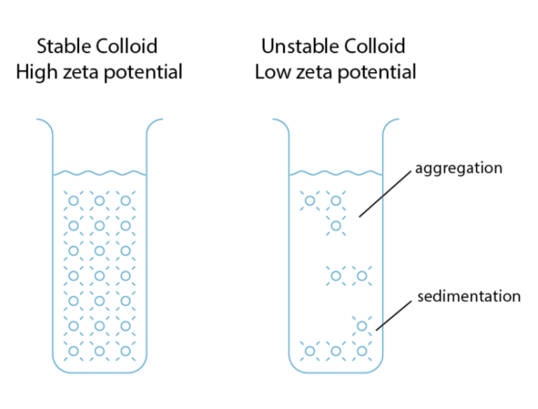One of the important properties of nanobubbles is the electrical charges on the bubble surface which determines the interaction of nanobubbles and how they interact with other materials such as solid particles or oil droplets. The electrical potential of a particle in a colloidal system can be expressed by the Zeta-potential.